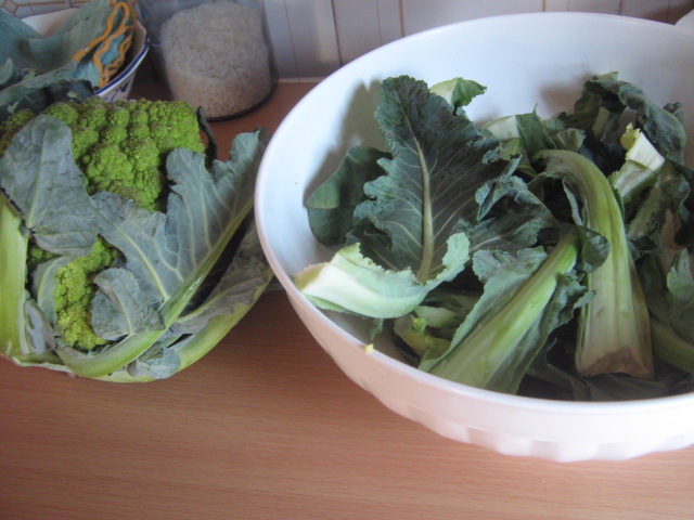 NB: le foglie vanno lavate per bene e private di ogni parte rovinata. Al meglio si cuociono nella pentola a pressione. Incidete le coste per migliorare la cottura, ma le coste più dure potete naturalmente rimuoverle e usare piuttosto la parte verde della foglia. Il torsolo dei cavolfiori, si può, come detto sopra, tagliare fine e cuocere in zuppa o semplicemente aggiungerlo al cavolo in questione e cuocerlo insieme!